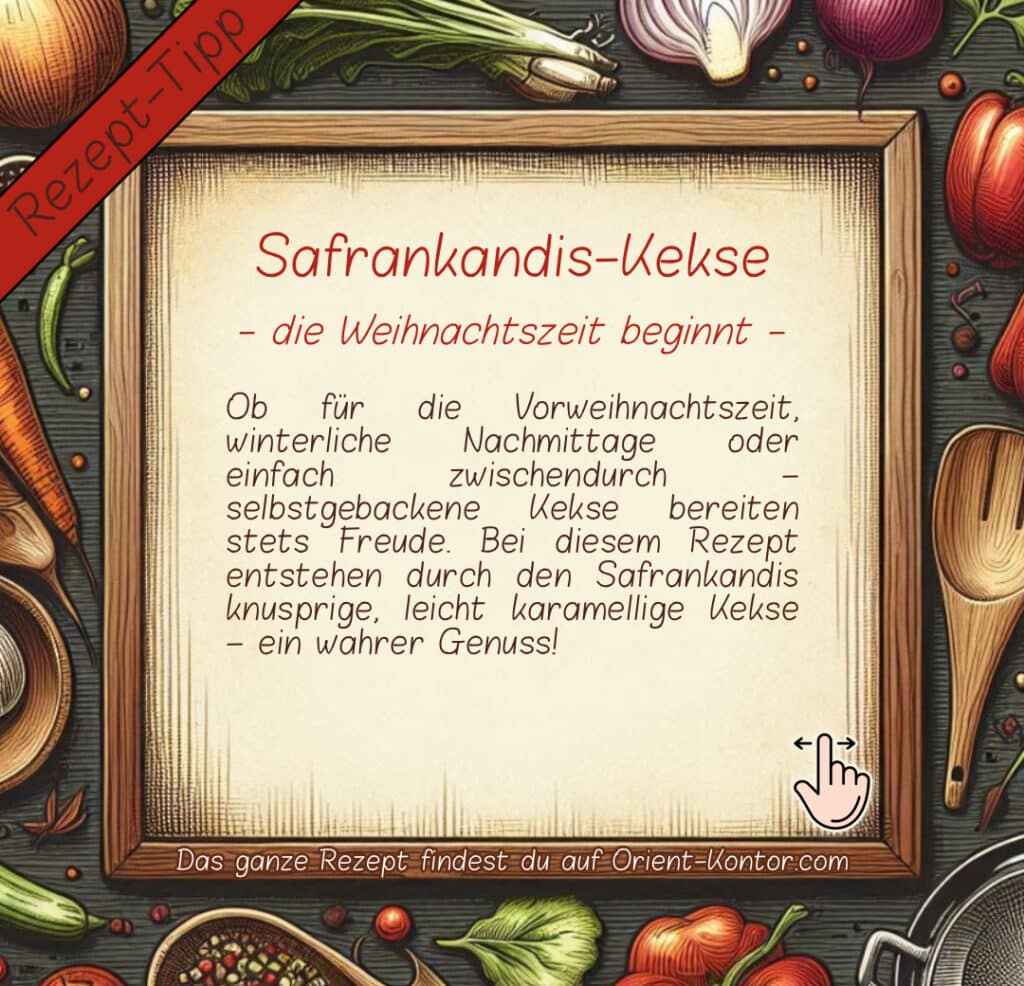 Ob für die Vorweihnachtszeit, winterliche Nachmittage oder einfach zwischendurch – selbstgebackene Kekse bereiten stets Freude. Bei diesem Rezept entstehen durch den Safrankandis knusprige, leicht karamellige Kekse – ein wahrer Genuss!