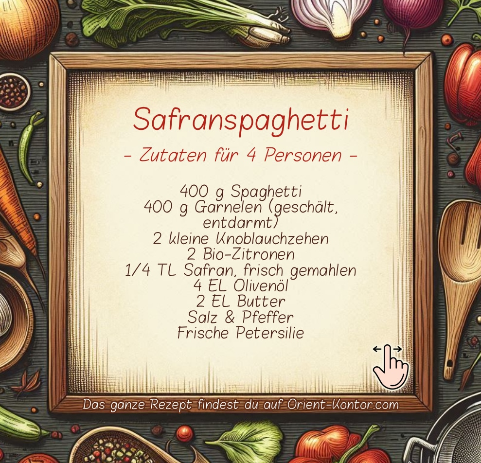 Dieses Pastagericht vereint den feinen Geschmack von Safran mit der Frische von Zitrone und zarten Garnelen. Die leuchtend goldene Farbe des Safrans sorgt nicht nur für einen optischen Hingucker, sondern verleiht den Spaghetti auch ein unvergleichliches Aroma. Mit nur wenigen Zutaten zaubern Sie in kurzer Zeit ein Gericht, das leicht und aromatisch ist. Perfekt für ein schnelles Dinner zu zweit oder ein Abendessen mit Freunden.