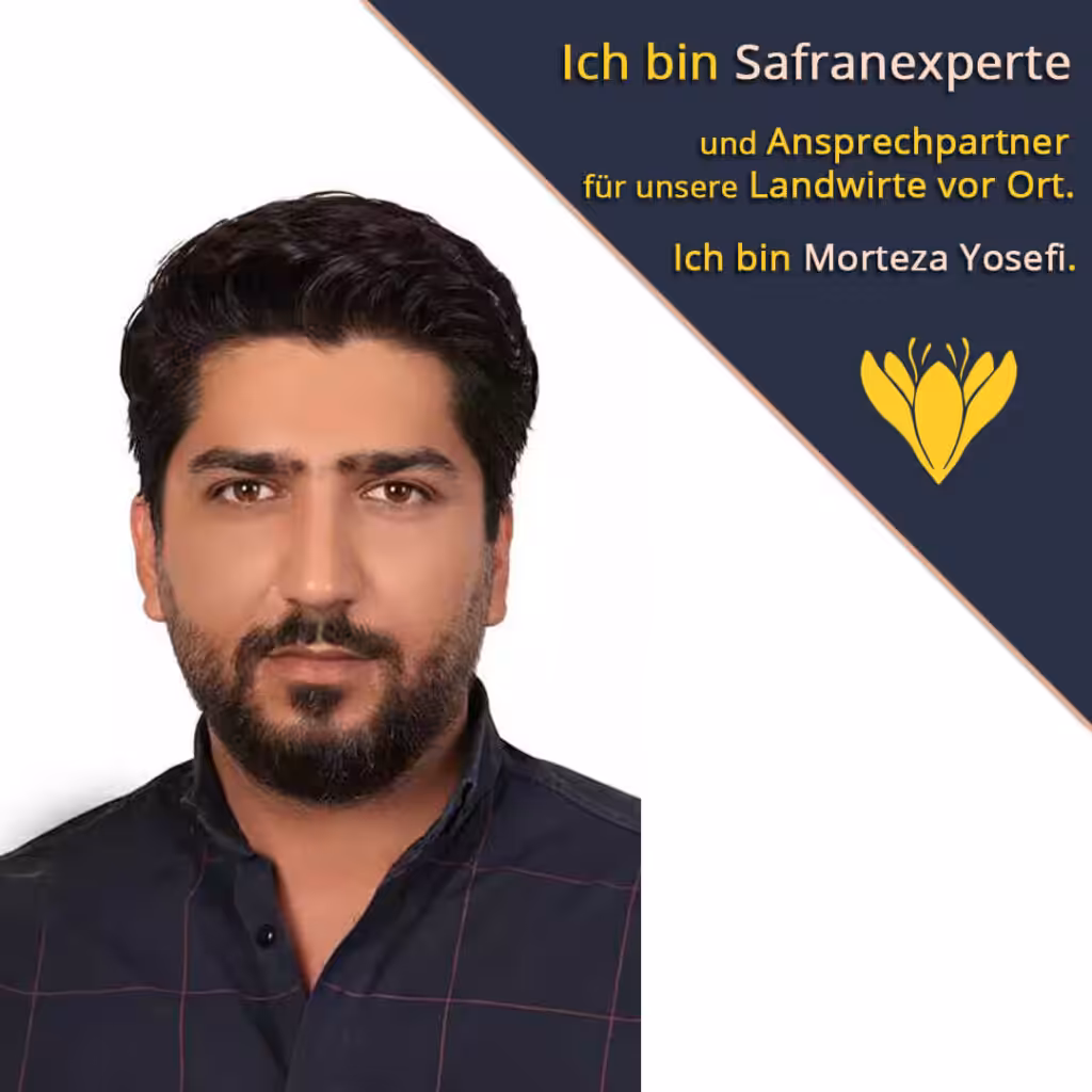 Morteza Yosefi, eigentlich Architekt, war von Anfang an bei dem Vorhaben Orient Kontor dabei. Er war maßgeblich dafür zuständig Kontakt mit den Bauern aufzunehmen und über faire Preise zu verhandeln. Auch jetzt ist er dort ein wichtiger Ansprechpartner für die Kleinbauern. Er unterstützt außerdem bei der iranischen Bürokratie und dem Zoll und ermöglicht einen sicheren Versand des Safrans nach Deutschland.