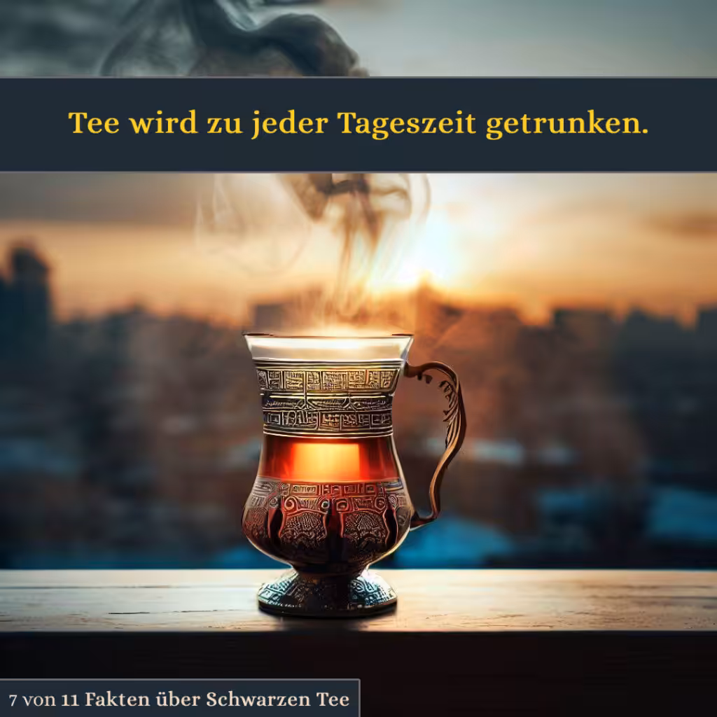 Egal ob morgens, mittags oder abends, zu Hause, im Geschäft oder während eines Staus – für ein Gläschen Tee ist immer Zeit und man bekommt diesen zu jeder Tageszeit überall angeboten. Selbst abends nach dem Essen nimmt man gerne Tee zu sich: Er dient mit etwas Obst zum Teil als Nachtisch.